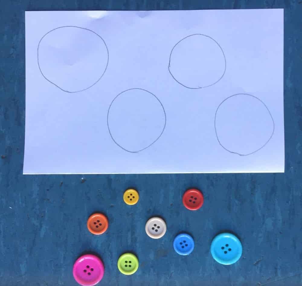 Este juego es similar al anterior, se trata en colocar en una hoja de papel la cantidad de círculos que serán el divisor y colocar a un lado la cantidad de botones que serán el dividendo.