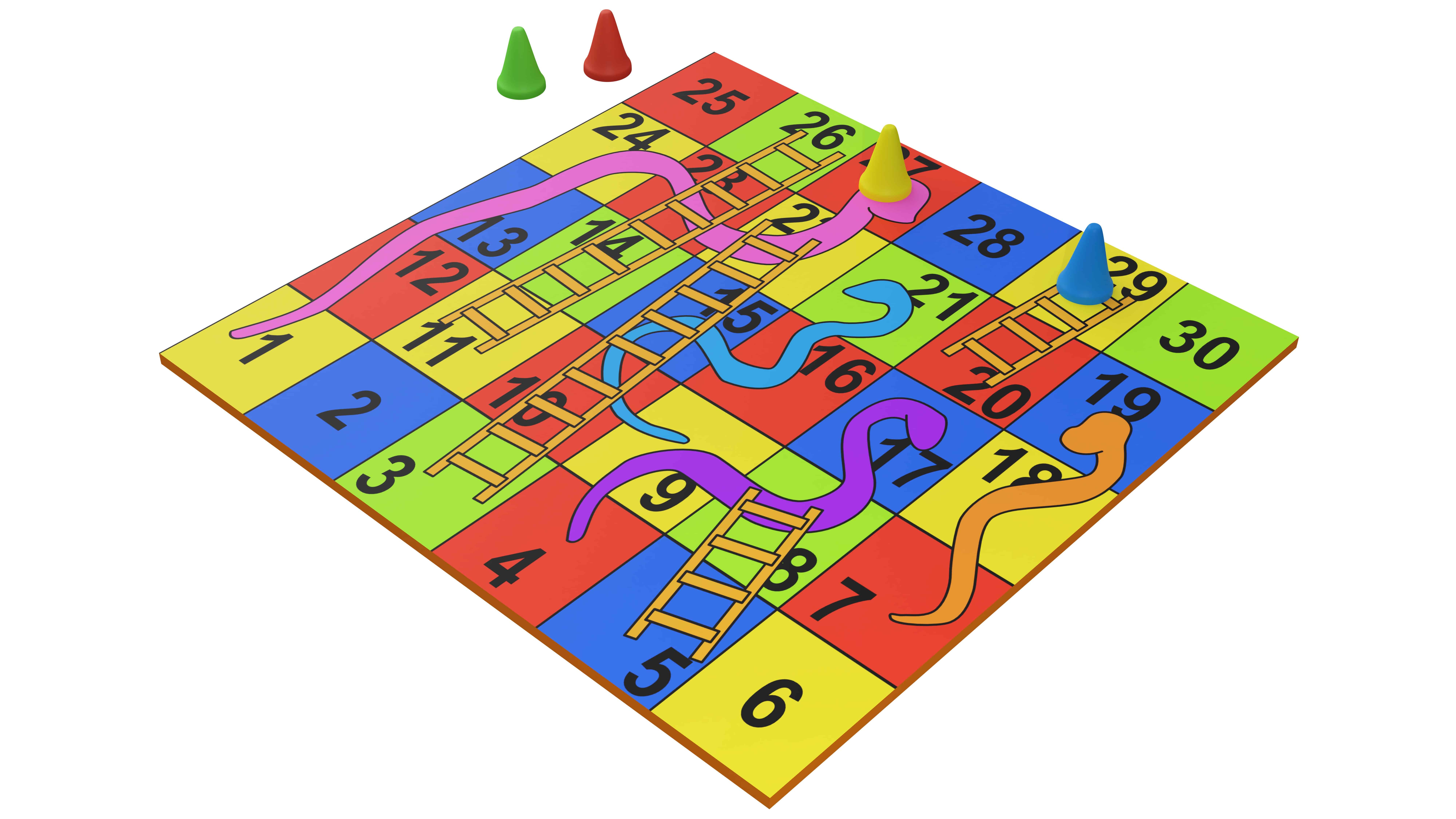 Pero no es tan sencillo el avance. El tablero estará lleno de serpientes y escaleras. Si caes en las primeras retrocederás hasta la casilla final de la serpiente. En cambio, si caes en escalera ¡que suerte! podrás saltarte unas cuantas casillas y llegarás más rápido a la meta.
