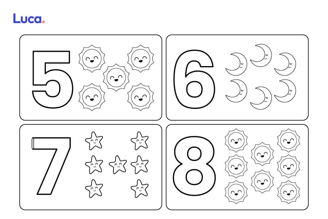 Lo recomendable, sobre todo en las primeras instancias de la educación infantil, es comenzar por el primer nivel de dificultad, es decir, los números del 01 al 10. En este caso se necesitarían de 20 cartas, contando los pares.