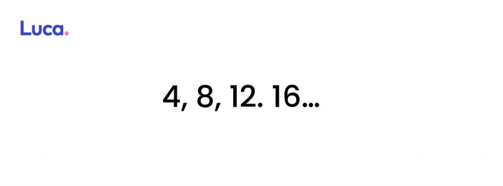4,8,12,16,20 es una sucesión infinita en la que el primer término es a1 = 4 y el último a5 = 20.