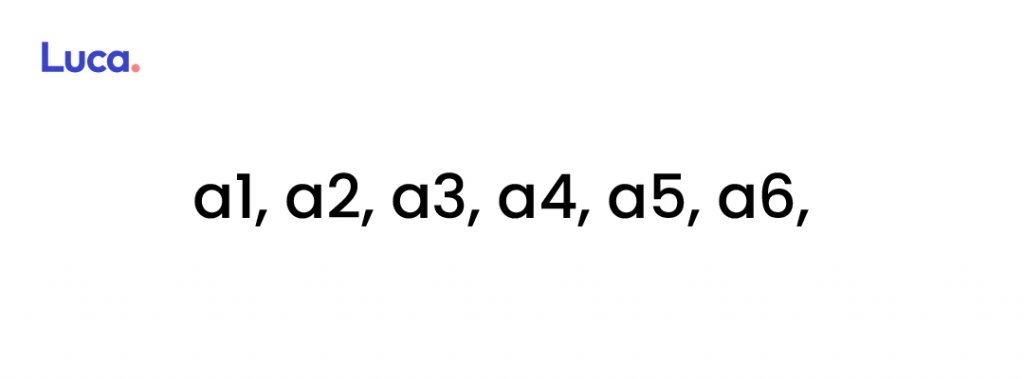 - Los términos que componen la sucesión se denotan por medio de una letra minúscula y un número, expresado como un subíndice, es decir, a1 = 3, por ejemplo.