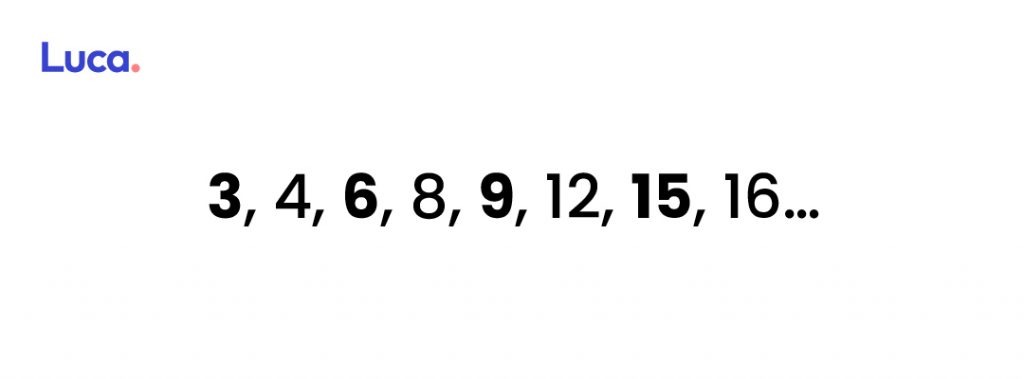 La primera sucesión está compuesta por un conjunto de términos que son múltiplos del 3.