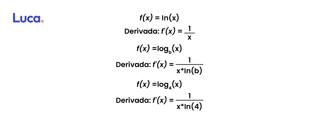 En este caso, al igual que el anterior, la derivada dependerá de la base del algoritmo; si este es natural o la base es otro número la regla cambia.